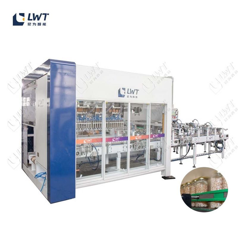 この機械はガラスボトル,鉄缶,プラスチックボトル,大きな口ボトルなどに適しています.主に豆,桃のフラップ,桃のストライプ,ホートーン,ストロベリー,ブドウ,アプリコット,リッチーに使用されます.,ソーヤソースで焼く肉,鶏肉,魚など,あらゆる種類の固体製品 缶詰の測定と詰め込み.